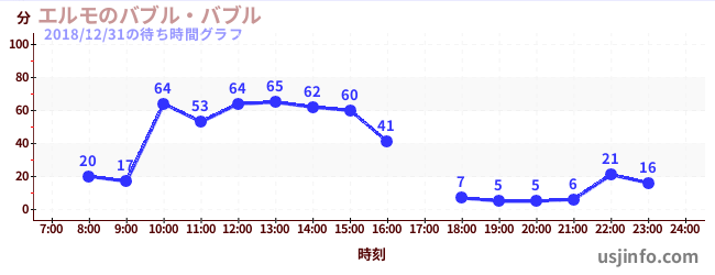 • エルモのバブル・バブル$B$N(B2018年12月31日の待ち時間