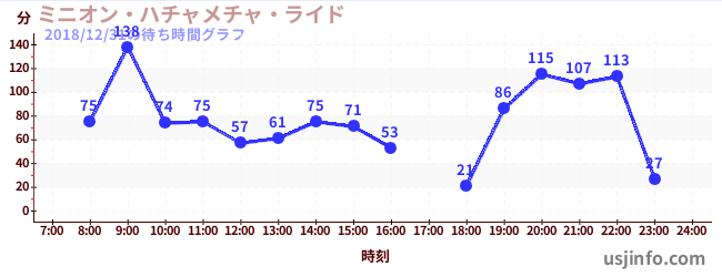 • ミニオン・ハチャメチャ・ライド$B$N(B2018年12月31日の待ち時間
