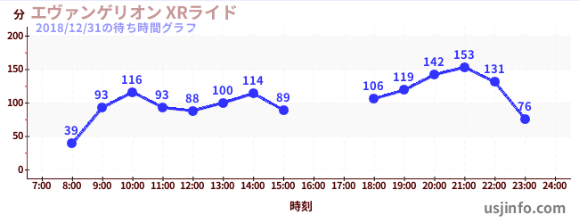 • エヴァンゲリオン XRライド$B$N(B2018年12月31日の待ち時間