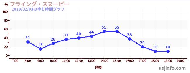 • フライング・スヌーピー$B$N(B2019年02月03日の待ち時間