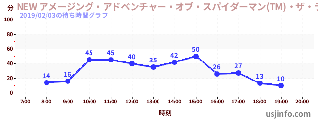 • NEW アメージング・アドベンチャー・オブ・スパイダーマン(TM)・ザ・ライド 4K3D$B$N(B2019年02月03日の待ち時間