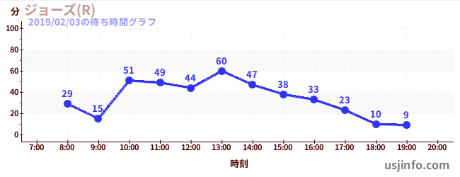 • ジョーズ(R)$B$N(B2019年02月03日の待ち時間