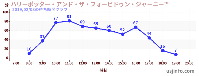 • ハリーポッター・アンド・ザ・フォービドゥン・ジャーニー™$B$N(B2019年02月03日の待ち時間