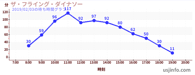 • ザ・フライング・ダイナソー$B$N(B2019年02月03日の待ち時間