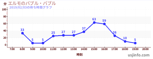 • エルモのバブル・バブル$B$N(B2019年02月03日の待ち時間