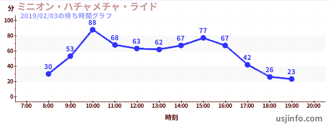 • ミニオン・ハチャメチャ・ライド$B$N(B2019年02月03日の待ち時間