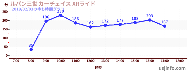 • ルパン三世 カーチェイス XRライド$B$N(B2019年02月03日の待ち時間