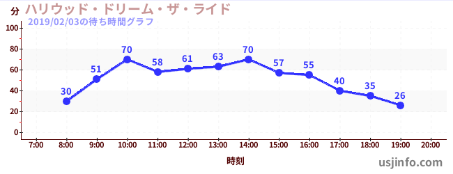 • ハリウッド・ドリーム・ザ・ライド$B$N(B2019年02月03日の待ち時間