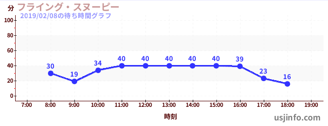 • フライング・スヌーピー$B$N(B2019年02月08日の待ち時間