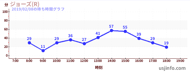 • ジョーズ(R)$B$N(B2019年02月08日の待ち時間