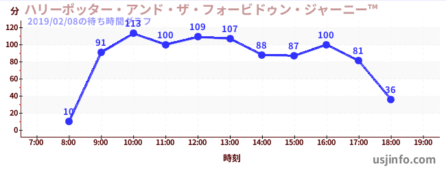 • ハリーポッター・アンド・ザ・フォービドゥン・ジャーニー™$B$N(B2019年02月08日の待ち時間