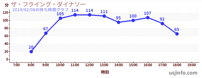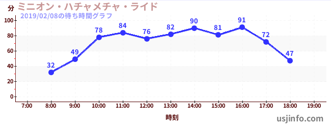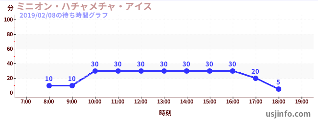 • ミニオン・ハチャメチャ・ライド$B$N(B2019年02月08日の待ち時間