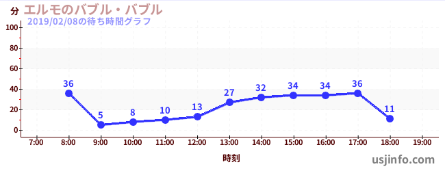 • エルモのバブル・バブル$B$N(B2019年02月08日の待ち時間