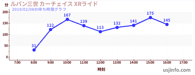 • ルパン三世 カーチェイス XRライド$B$N(B2019年02月08日の待ち時間