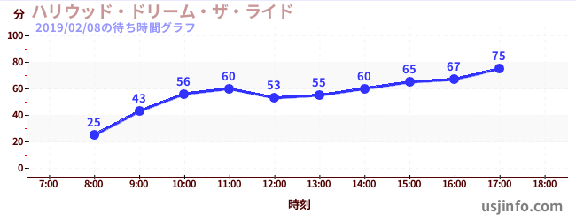 • ハリウッド・ドリーム・ザ・ライド$B$N(B2019年02月08日の待ち時間