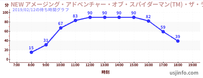 • NEW アメージング・アドベンチャー・オブ・スパイダーマン(TM)・ザ・ライド 4K3D$B$N(B2019年02月12日の待ち時間