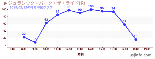 • ジュラシック・パーク・ザ・ライド(R)$B$N(B2019年02月12日の待ち時間