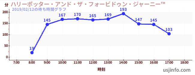 • ハリーポッター・アンド・ザ・フォービドゥン・ジャーニー™$B$N(B2019年02月12日の待ち時間