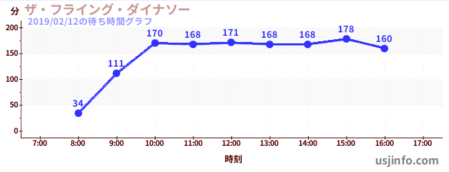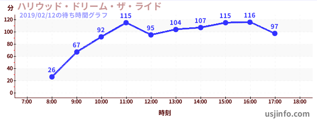 • ハリウッド・ドリーム・ザ・ライド$B$N(B2019年02月12日の待ち時間