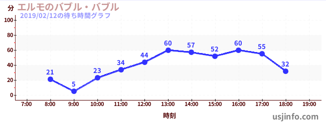 • エルモのバブル・バブル$B$N(B2019年02月12日の待ち時間