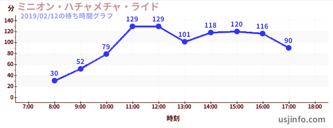 • ミニオン・ハチャメチャ・ライド$B$N(B2019年02月12日の待ち時間