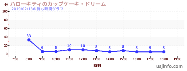 • ハローキティのカップケーキ・ドリーム$B$N(B2019年02月13日の待ち時間