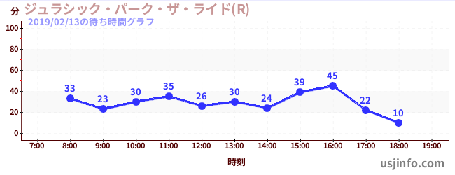 • ジュラシック・パーク・ザ・ライド(R)$B$N(B2019年02月13日の待ち時間