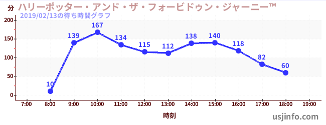 • ハリーポッター・アンド・ザ・フォービドゥン・ジャーニー™$B$N(B2019年02月13日の待ち時間