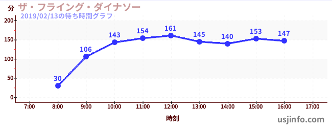 • ザ・フライング・ダイナソー$B$N(B2019年02月13日の待ち時間