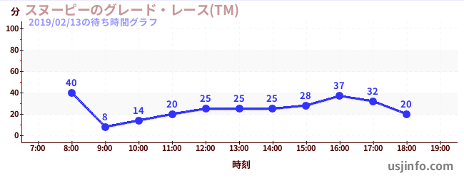 • スヌーピーのグレード・レース(TM)$B$N(B2019年02月13日の待ち時間