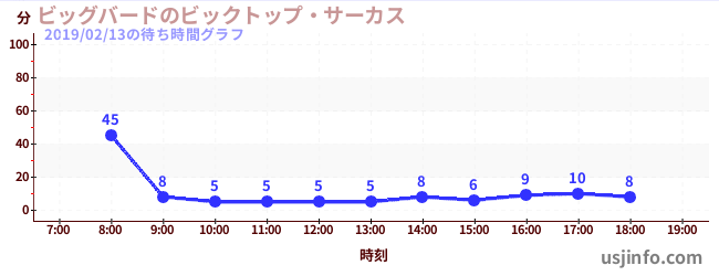 • ビッグバードのビックトップ・サーカス$B$N(B2019年02月13日の待ち時間