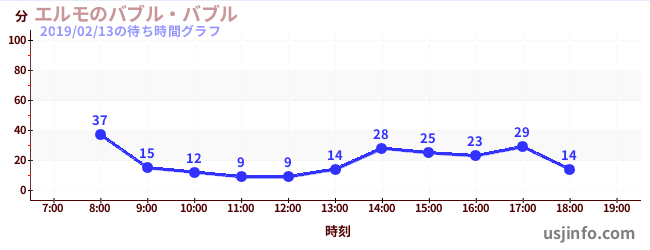 • エルモのバブル・バブル$B$N(B2019年02月13日の待ち時間