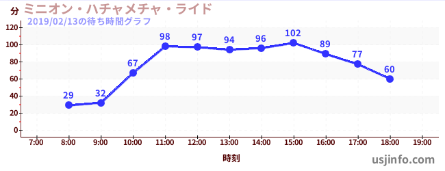• ミニオン・ハチャメチャ・ライド$B$N(B2019年02月13日の待ち時間