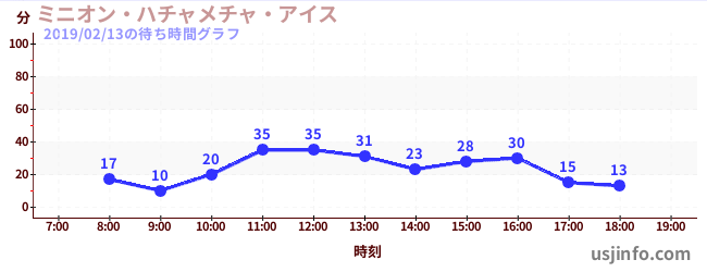 • ミニオン・ハチャメチャ・アイス$B$N(B2019年02月13日の待ち時間