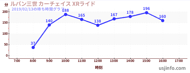 • ルパン三世 カーチェイス XRライド$B$N(B2019年02月13日の待ち時間