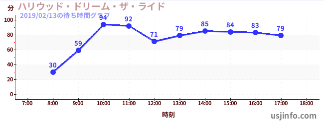• ハリウッド・ドリーム・ザ・ライド$B$N(B2019年02月13日の待ち時間