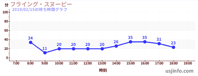 • フライング・スヌーピー$B$N(B2019年02月15日の待ち時間