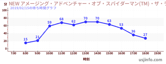 • NEW アメージング・アドベンチャー・オブ・スパイダーマン(TM)・ザ・ライド 4K3D$B$N(B2019年02月15日の待ち時間