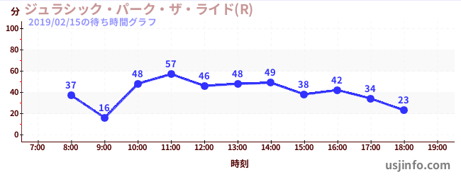 • ジュラシック・パーク・ザ・ライド(R)$B$N(B2019年02月15日の待ち時間