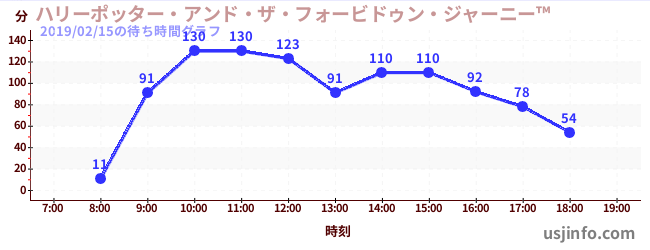 • ハリーポッター・アンド・ザ・フォービドゥン・ジャーニー™$B$N(B2019年02月15日の待ち時間