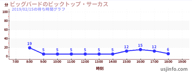 • ビッグバードのビックトップ・サーカス$B$N(B2019年02月15日の待ち時間