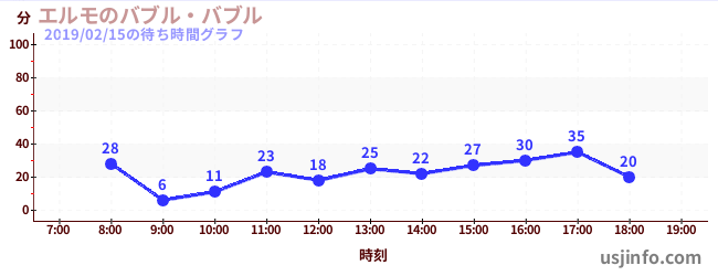 • エルモのバブル・バブル$B$N(B2019年02月15日の待ち時間