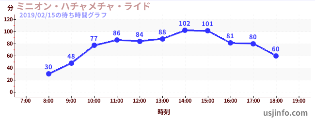 • ミニオン・ハチャメチャ・ライド$B$N(B2019年02月15日の待ち時間