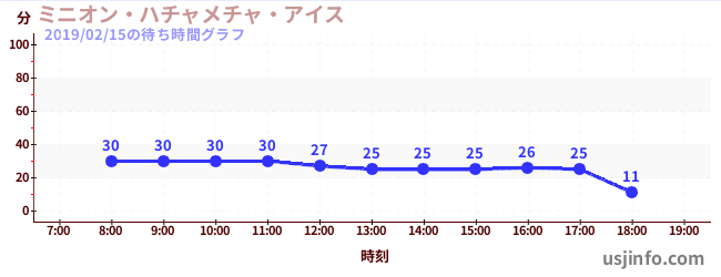 • ミニオン・ハチャメチャ・アイス$B$N(B2019年02月15日の待ち時間