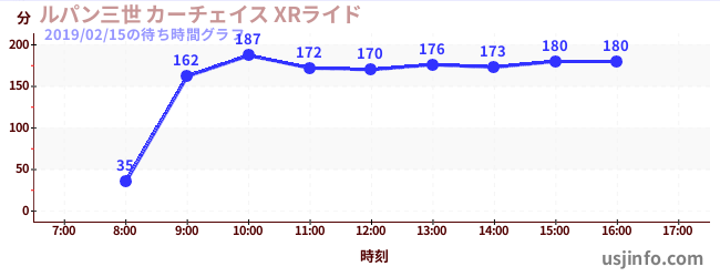 • ルパン三世 カーチェイス XRライド$B$N(B2019年02月15日の待ち時間