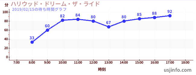 • ハリウッド・ドリーム・ザ・ライド$B$N(B2019年02月15日の待ち時間