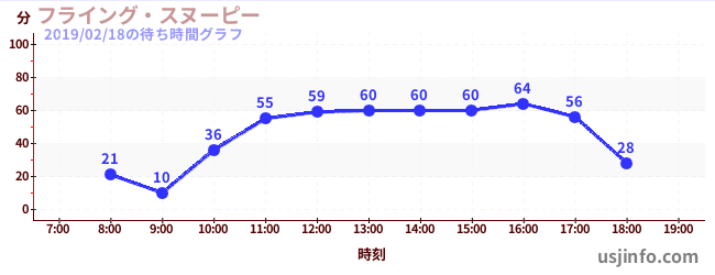 • フライング・スヌーピー$B$N(B2019年02月18日の待ち時間