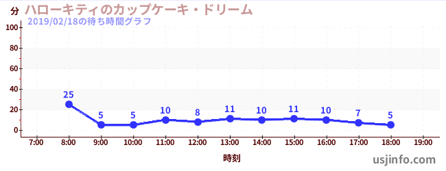 • ハローキティのカップケーキ・ドリーム$B$N(B2019年02月18日の待ち時間