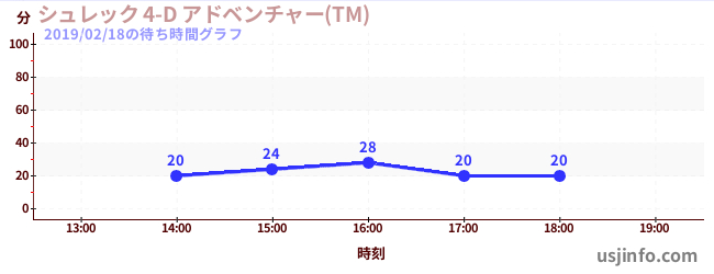 • シュレック 4-D アドベンチャー(TM)$B$N(B2019年02月18日の待ち時間