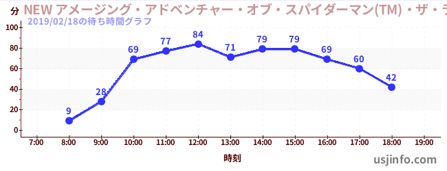• NEW アメージング・アドベンチャー・オブ・スパイダーマン(TM)・ザ・ライド 4K3D$B$N(B2019年02月18日の待ち時間